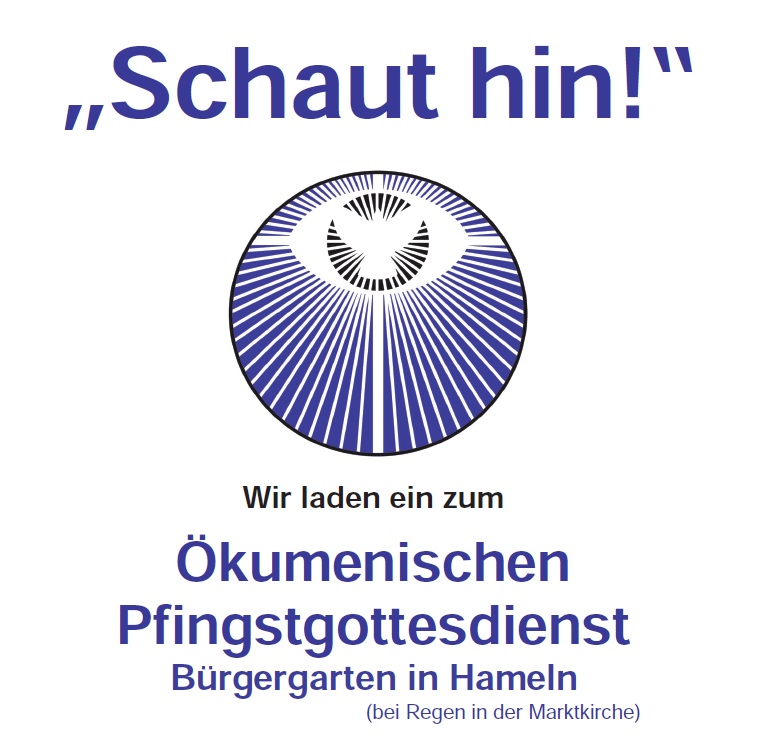 Live, unter freiem Himmel und in sprachlicher Vielfalt! Die Arbeitsgemeinschaft Christlicher Kirchen in Hameln ACKH lädt zum beliebten Pfingstgottesdienst ein: Pfingstsonntag, 23. Mai um 10:30 Uhr im Bürgergarten.