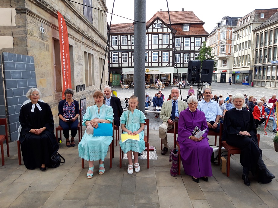 Der Ökumenische Pfingstgottesdienst der Arbeitsgemeinschaft Christlicher Kirchen in Hameln auf der Hochzeitshausterrasse war in mehrfacher Hinsicht wunderbar: Wetter, Thema, Musik, Stimmung - alles passte prima zusammen. Die gut 300 Besucherinnen und Besucher zeigten sich obendrein spendabel: für die Hamelner Tafel kamen über 1.400€ zusammen.