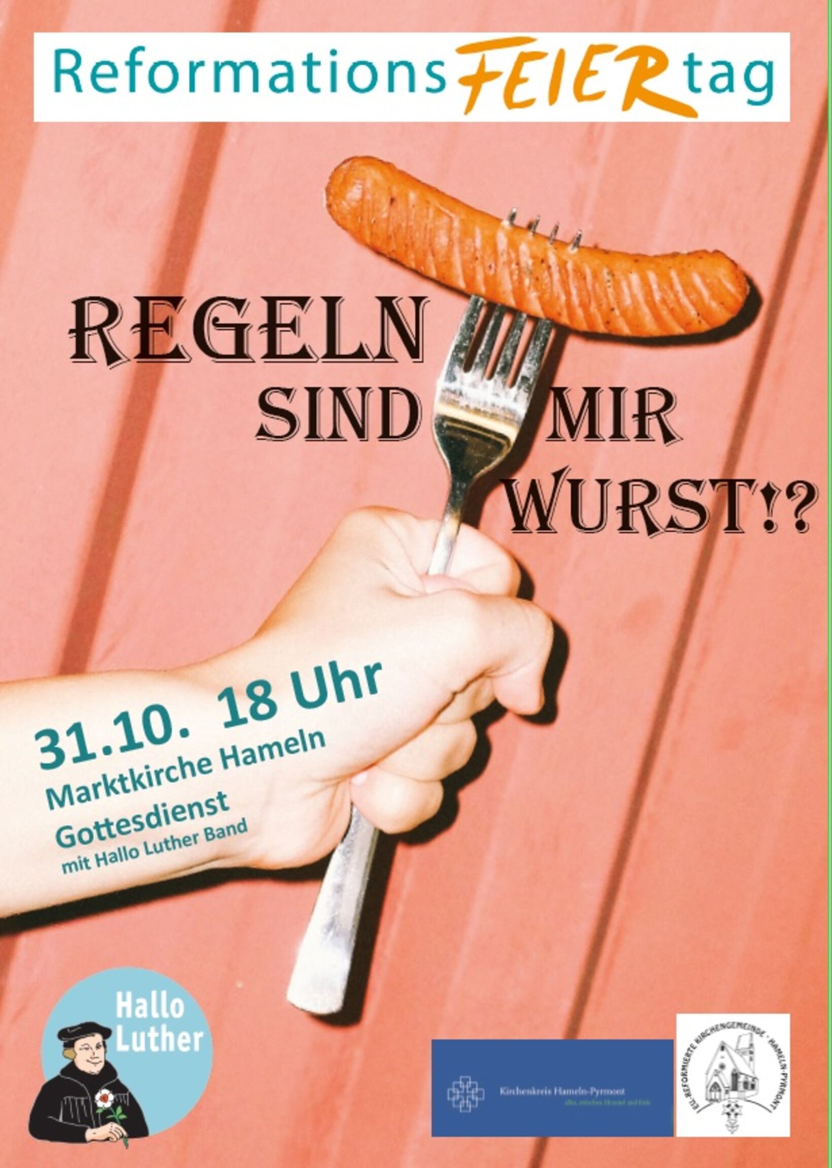 - Den Gottesdienst am Reformationstag begehen die Evangelisch-lutherischen Kirchengemeinden Hameln-Pyrmont und die Evangelisch-reformierte Kirchengemeinde Hameln-Pyrmont traditionell gemeinsam: am Montag, den 31. Oktober um 18 Uhr in der Marktkirche in Hameln.