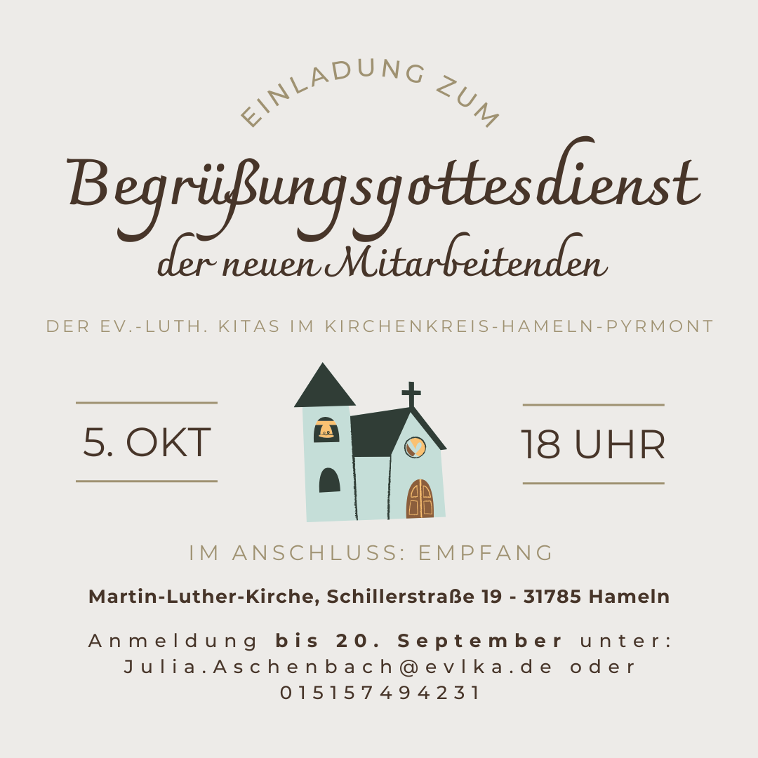 Mit einem farbenfroh-fröhlichen Gottesdienst in der Martin-Luther-Kirche werden am 5. Oktober alle neuen Mitarbeitenden der ev.-luth. Kindertagesstätten im Kirchenkreis Hameln-Pyrmont gemeinsam willkommen geheißen. Über 60 neue Kita-Mitarbeitende, ihre Angehörigen und Kolleg*innen sind herzlich dazu eingeladen. Superintendent Dr. Stephan Vasel und Diakonin Julia Aschenbach, die Fachberaterin zur religionspädagogischen Arbeit in den evangelischen Kitas ist, gestalten den Begrüßungsgottesdienst gemeinsam. Beginn ist um 18 Uhr.