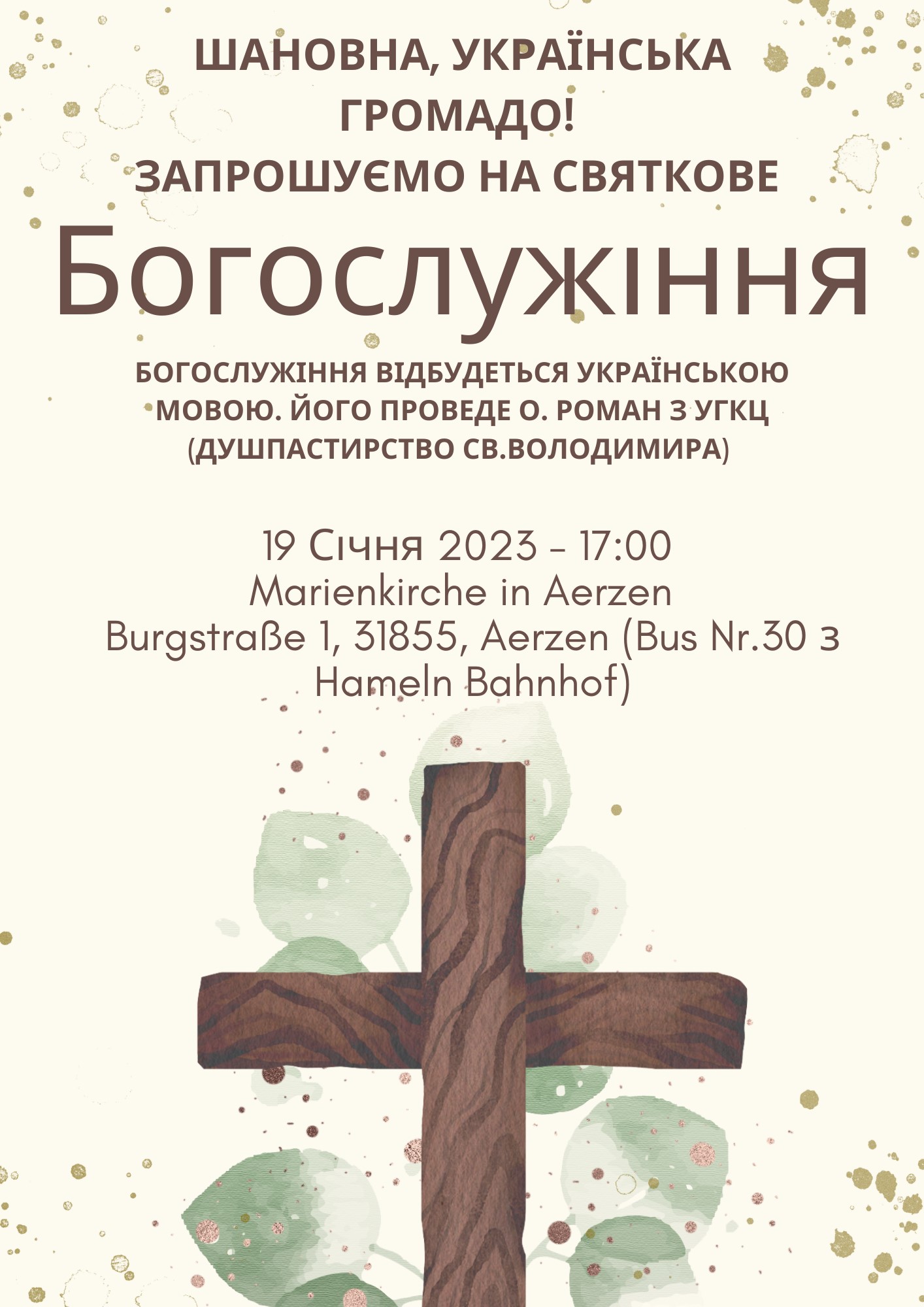 Zu einem Gottesdienst in ukrainischer Sprache lädt die Marienkirchengemeinde am Donnerstag, 19. Januar, um 17 Uhr ein. Frauen aus der Ukraine, die im Flecken Aerzen leben, haben den Gottesdienst organisiert, den Pfarrer Roman Maksymtsiv von der Ukrainische St.-Wolodymyr-Kirche in Hannover halten wird. Im Anschluss an den Gottesdienst kann die Ausstellung „Von Horizont zu Horizont“ angesehen werden, mit Fotografien von Wolodymir Ogloblin, der nach der Zerstörung seines Studios aus Kharkiv (Ukraine) geflohen ist.