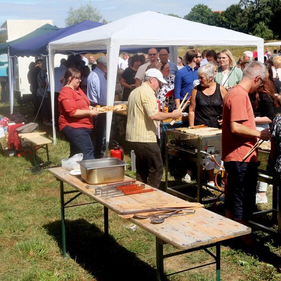 Als krönender Abschluss folgte ein Grillen mit schmackhaften Salaten und Bratwürsten. Wer wollte, konnte sogar vegetarische Bratwürste bekommen. An alles war gedacht, oder es regelte sich wie von Zauberhand selbst. Kaum ging die Veranstaltung dem Ende zu, lagen auch schon die ersten Stapel Tische und Bänke zur Abfuhr bereit. Fleißige Hände verteilten die letzten Salatreste, um ebenso flink die Tafel des Buffets aufzuheben.
