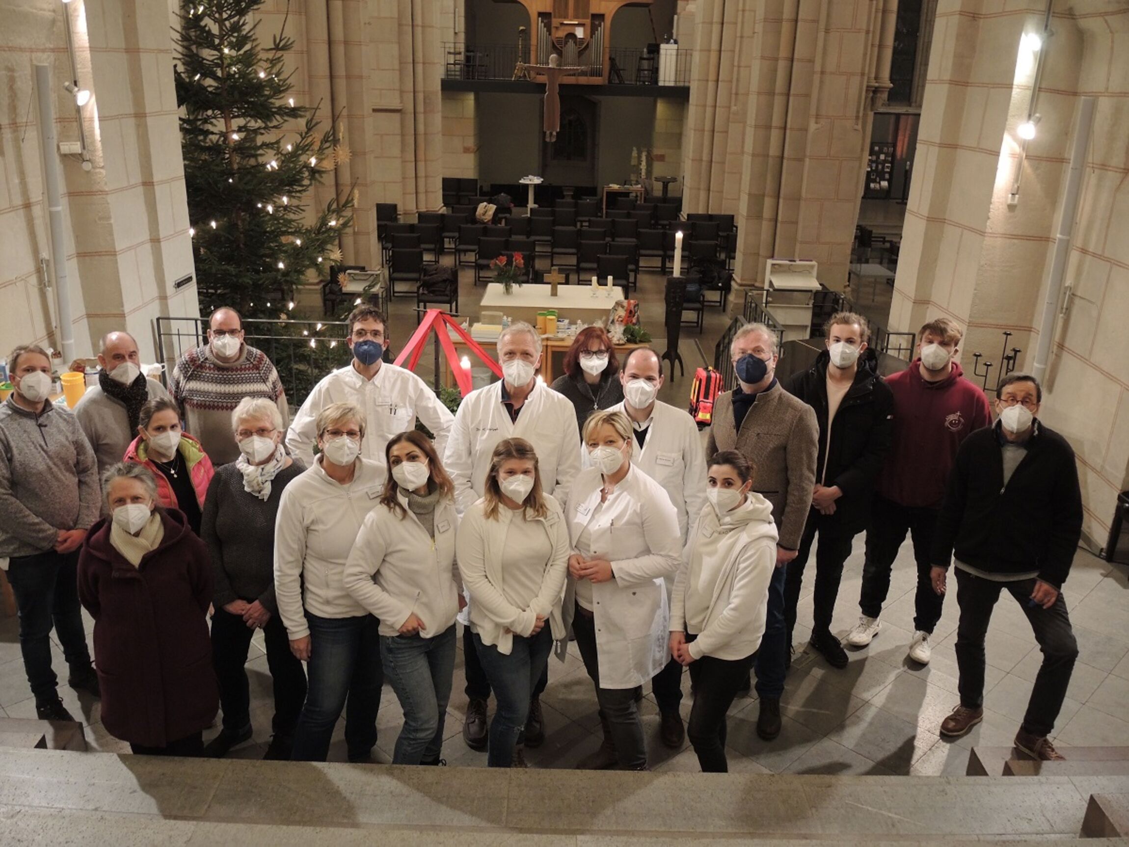 „Ich bedaure, dass ich Impfgegner nicht habe zu einer Impfung bewegen können, die vor dem Münster still ihrer Meinung Ausdruck verliehen haben“, schloß Pastor Lesinski an. Ihr Lied „Fürchte dich nicht“ ließ sich nicht nur als Vertrauen auf ein Leben ohne Impfungen in der aktuellen Pandemiesituation verstehen. Es konnte auch als Bestätigung gehört werden, dass das Praxisteam nicht nur verantwortungsvoll impfte, sondern ebenso fachkundig aufzuklären und zu beraten verstand. So fühlte sich auch die jüngste Impfkandidatin, die im Alter von 16 Jahren ihre beiden Eltern mitgebracht hatte, sicher betreut. Schülerinnen und Schüler der Berufsschule fanden sich ebenso unter den Interessierten wie auch Personen mit Migrationshintergrund. Das polyglotte Praxisteam und die jugendlichen Teamer, Ehrenamtlichen und Kirchenvorstandsmitglieder der Münster-Gemeinde verstanden es, einfühlsam und umsichtig auf jede Person einzugehen.