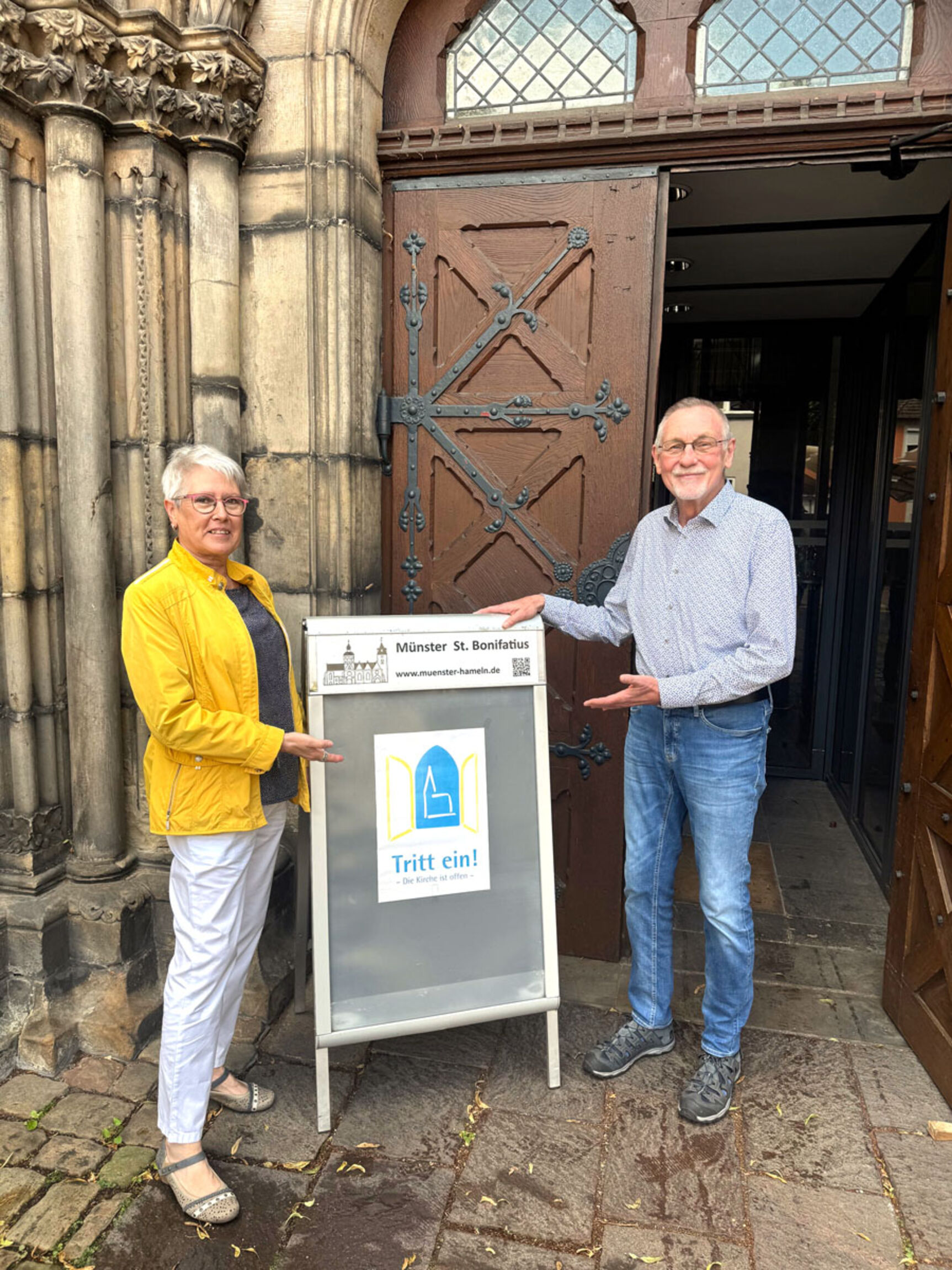 „Eine schöne Aufgabe ist das als Repräsentant der Kirche“, betont Heike Köhler. Um mitzumachen muss man übrigens nicht getauft sein. In einem Schaukasten am Münster und auf der Homepage gibt es eine Liste mit verlässlichen Öffnungszeiten, die ständig aktualisiert wird. In der Marktkirche St. Nicolai besteht dieser Willkommensdienst bereits seit längerem. Grund dafür ist die wertvolle Beckerath-Goll-Orgel, die geschützt werden muss. Auch zieht das Rattenfängerfenster regelmäßig Touristengruppen an. Daher ist die Kirche im Stadtzentrum jeweils dienstags bis sonntags verlässlich von 12 bis 16 Uhr geöffnet.