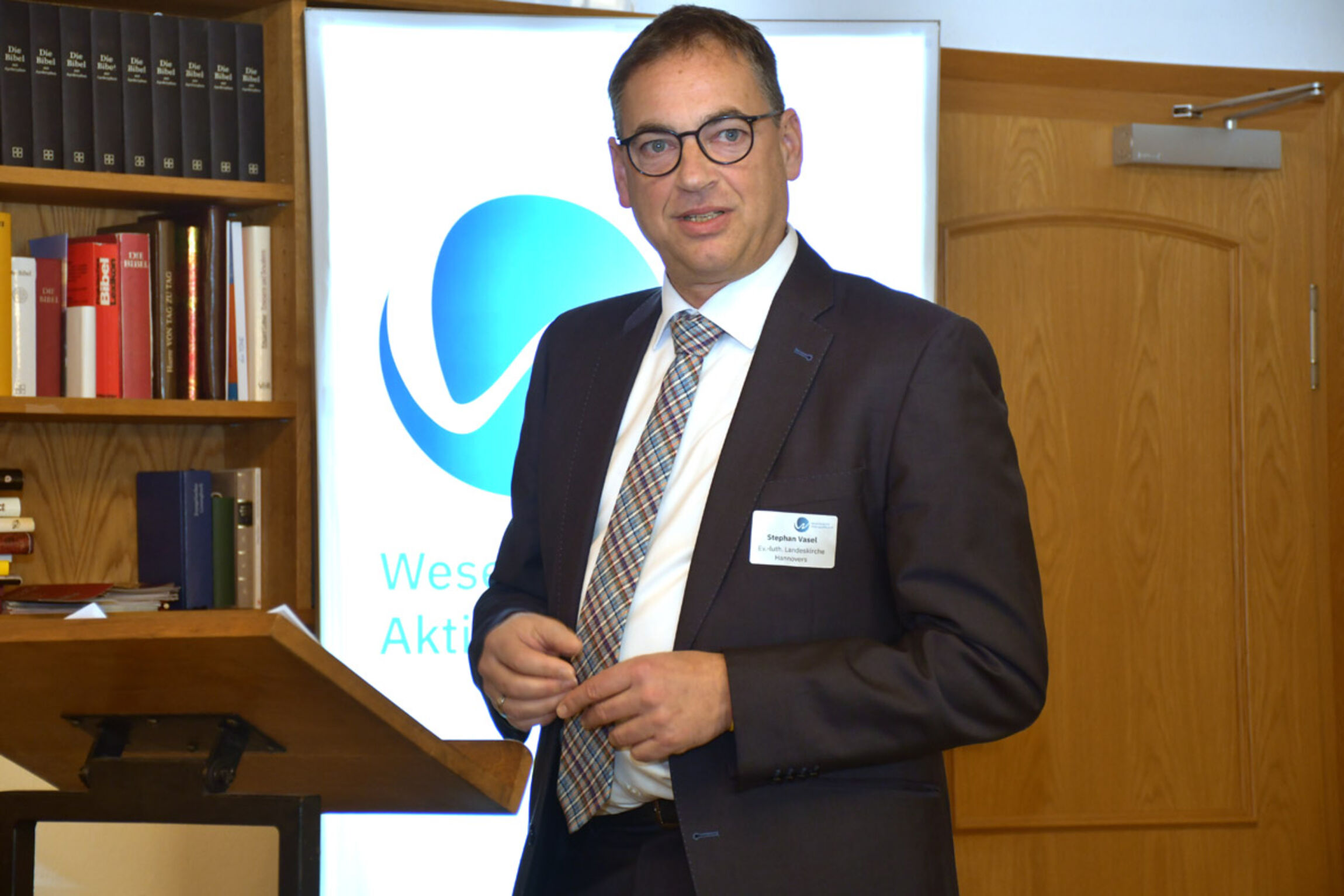 Vasel machte den interessiert zuhörenden Unternehmern deutlich, dass eine Orientierungskrise nicht Orientierungslosigkeit bedeutet, sondern eine Phase, in der Entscheidungen notwendig sind. Orientierung entstehe nicht von selbst, sondern benötige eine bewusste Haltung, Reflexion und Dialog – besonders in einer modernen, pluralen Gesellschaft. „In diesem Jahr gibt es eine Jahreslosung, einen Bibeltext als Motto für das Jahr, von Paulus: Prüft alles und das Gute behaltet (1. Thess 5,21). Die Gelassenheit und Offenheit, die hiermit verbunden sind, halte ich für einen wesentlichen Beitrag des christlichen Glaubens für den Umgang mit den Problemen unserer Zeit“, betonte Vasel. In seinem Vortrag spannte er den Bogen von den religiösen und kulturellen Wurzeln Europas bis hin zu aktuellen gesellschaftlichen, politischen und wirtschaftlichen Herausforderungen. Vasel zeigte auf, dass Werte wie Verantwortung, Vertrauen, Fairness und ein gelassener Umgang mit Unterschiedlichkeit langfristig zur Stabilität von Gesellschaft und Wirtschaft beigetragen hätten.