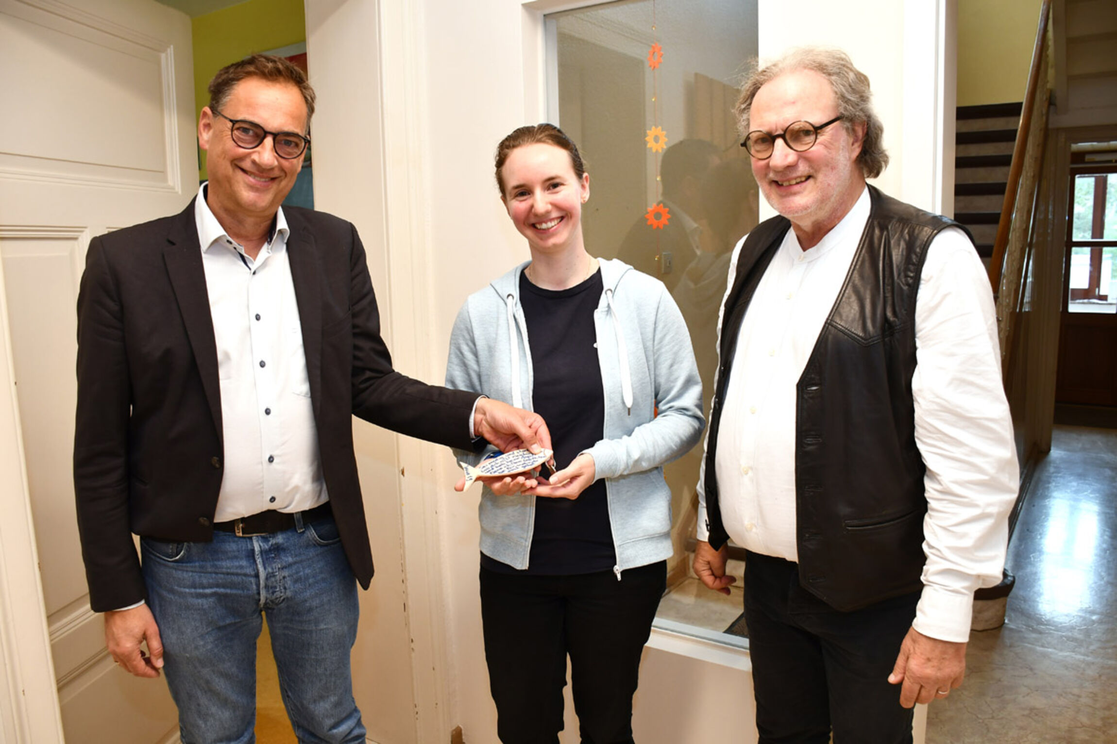 „Mein Arbeitstag besteht in viel Vorbereitung auf den Konfi-Unterricht. Das ganze Jahr ist bis zu den Konfirmationen im Mai 2026 bereits durchgestaltet“, berichtet die junge Frau. Sie bezeichnet ihre Arbeit als Herzensangelegenheit. „Vieles läuft spielerisch ab. Wir basteln uns ein Bibelzeichen, suchen um die Wette eine bestimmte Bibelstelle oder schätzen, welche Bibel die meisten Seiten hat. Die Konfi-Zeit soll den Jugendlichen den Glauben näher bringen.“ Daneben tauscht sie sich in Mails mit Eltern und den Gemeinden aus. Giulia Nehls ist ein Fan des Sozialwissenschaftlers Hans Thiersch. „Er hat den Begriff der Lebensweltorientierung in der Sozialen Arbeit stark gemacht. Wie kann ich Inhalte gut meiner jeweiligen Zielgruppe vermitteln, habe ich von ihm gelernt“, erklärt die Diakonin. Jeden Dienstag ist sie für anderthalb Stunden in der einen Woche bei den Vor-Konfis der 7. Klasse aktiv – und in der anderen Woche bei den Haupt-Konfis der 8. Klasse in Martin-Luther im Einsatz – mittwochs für den gleichen Zeitraum bei den Haupt-Konfis der 8. Klasse bei der Gemeinde An der Hamel.