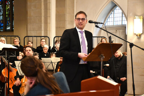 Mit drei pointierten Zwischenrufen setzte Dr. Stephan Vasel den judenfeindlichen Äußerungen bei der Aufführung der Johannespassion in der Marktkirche etwas entgegen. Foto: Harald Langguth
